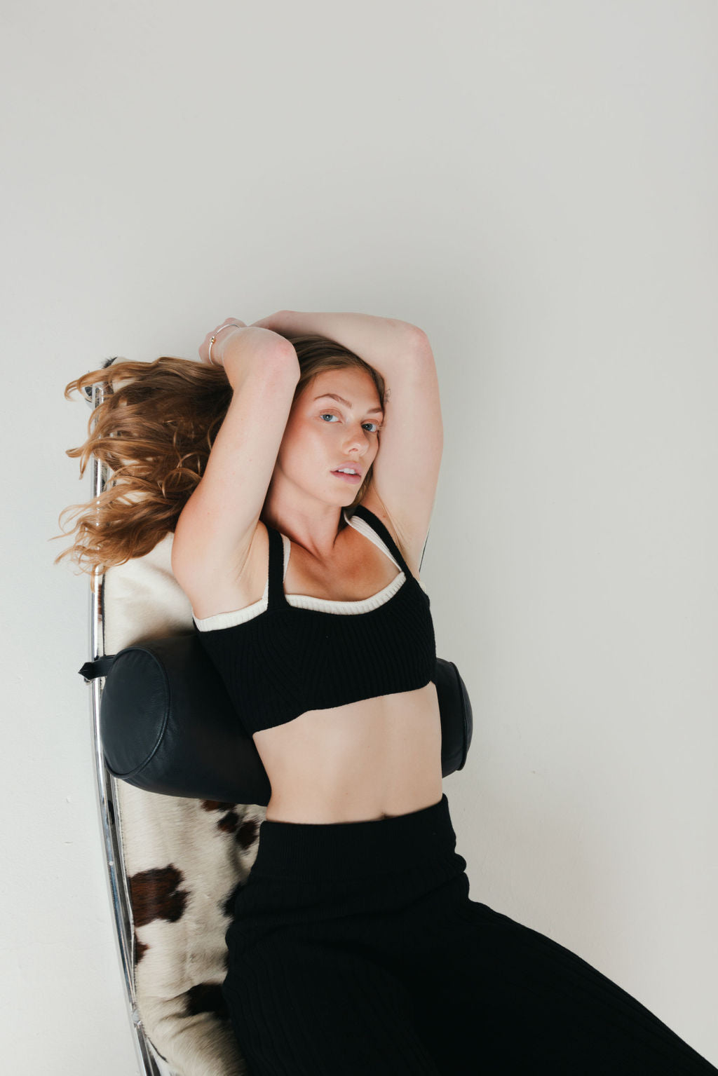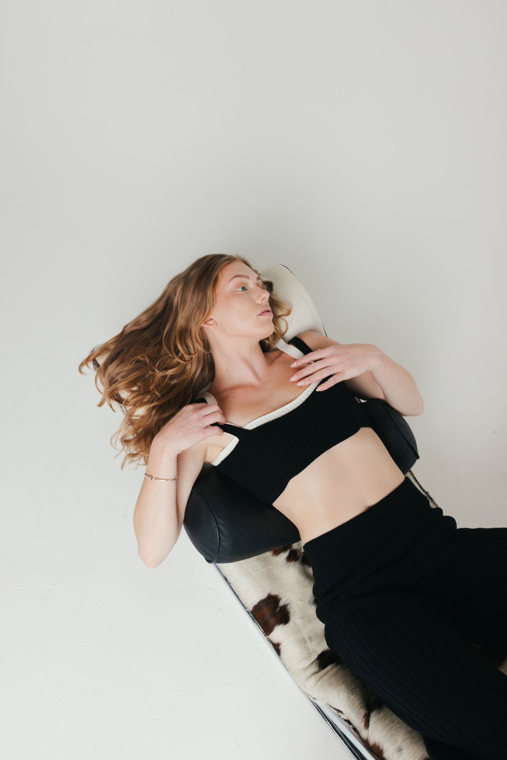 Soft knit slip on bralette in merino wool with seashell ribbed bustier.