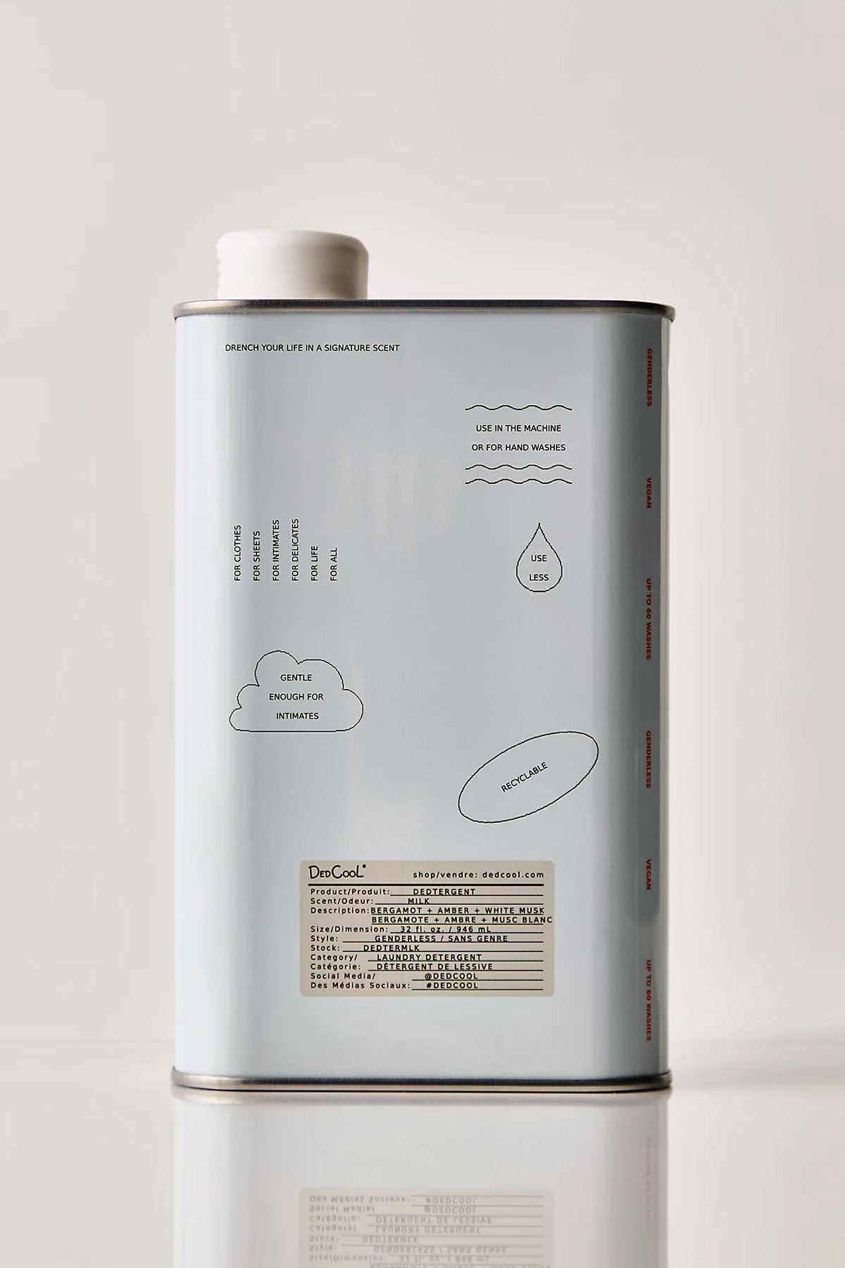 Made for washing your merino wool wardrobe, the 100% biodegradable, environmentally-conscious DedCool Dedtergent offers 60 washes, and can be used in the machine or for hand washing your items.
